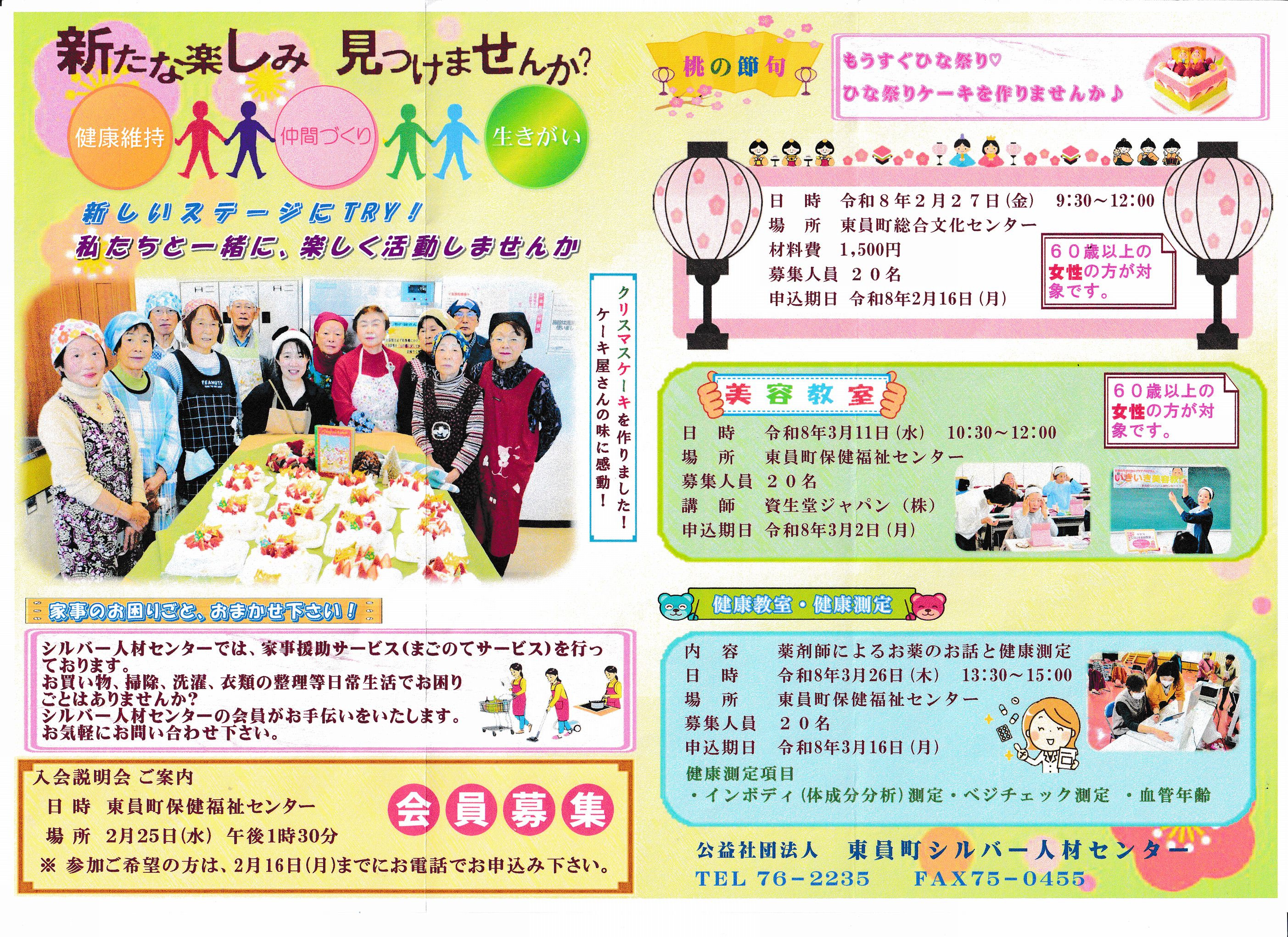 記事: 2月25日(水)13時30分 場所:東員町保健福祉センター (主催:東員町シルバー人材センター)